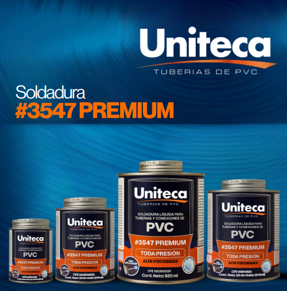 Soldadura liquida para tuberías y conexiones de PVC. Apta para sistemas de agua presión, aguas servidas y ducto eléctrico. Formulada bajo la norma ASTM D 2564.